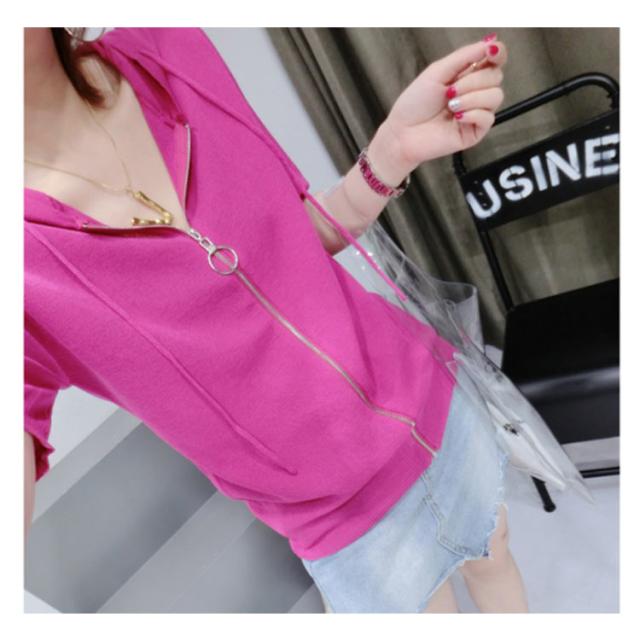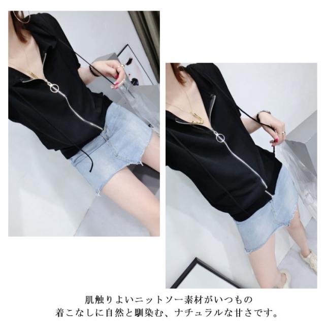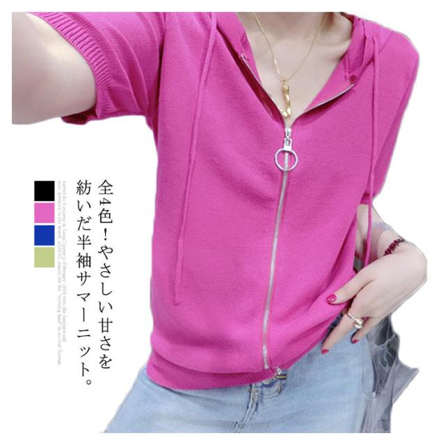 全4色!ジップアップニットトップス 半袖ニット ニットカーディガン トップス ジップアップ フード付き ニット 無地 半袖 全4色!ジップアップニットトップス シンプル おしゃれ 春 ニットパーカー