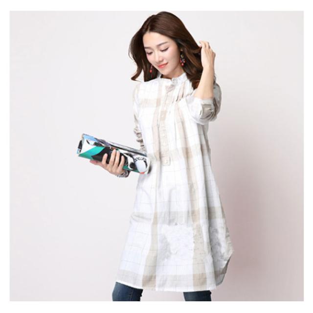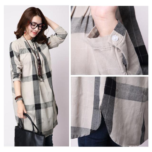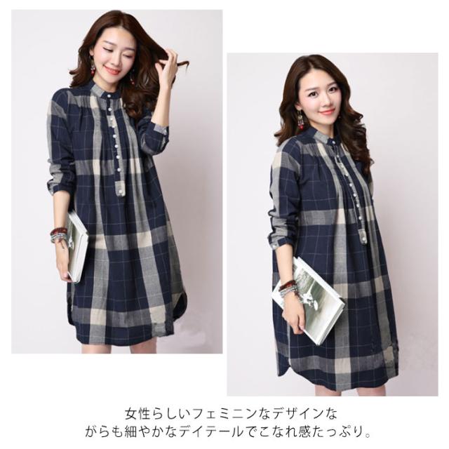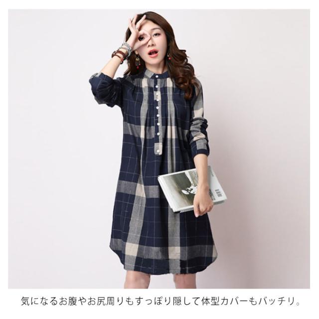 ロングシャツ 体型カバー チェック柄 全3色×5サイズ!シャツワンピース 立ち襟 チュニックワンピース ワンピース スタンドカラー ゆったり 全3色×5サイズ!シャツワンピース 長袖 春 秋 おしゃれ 大きサイズ