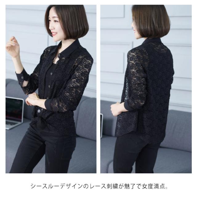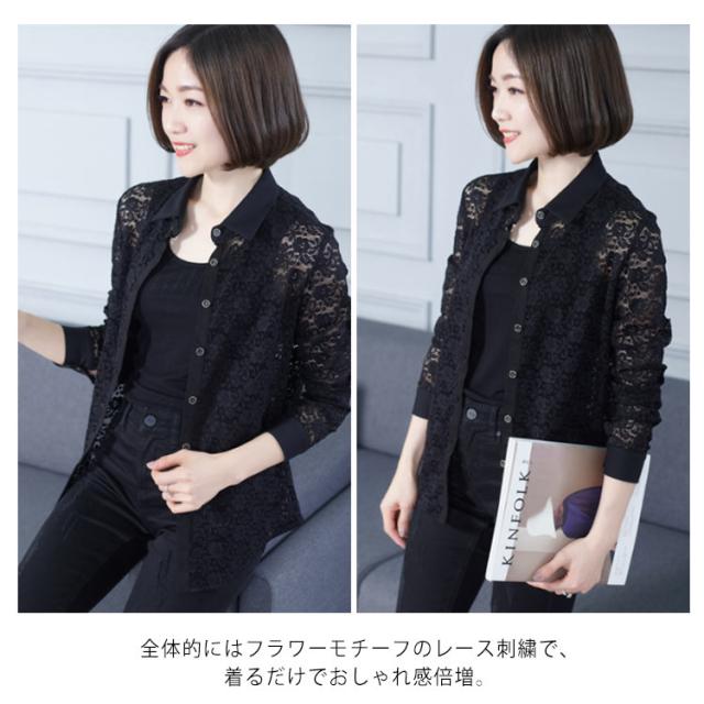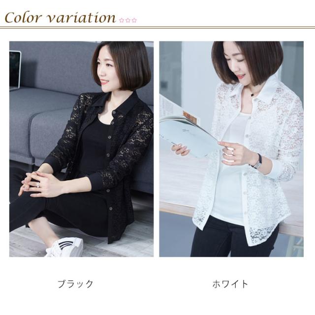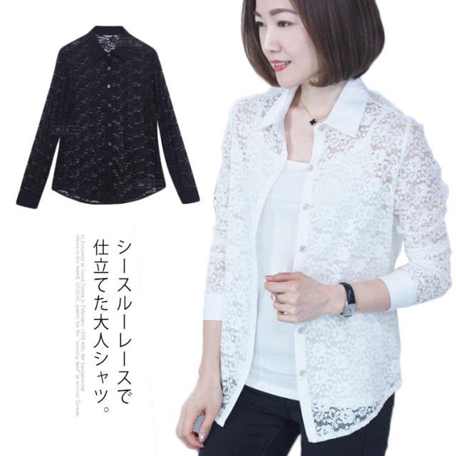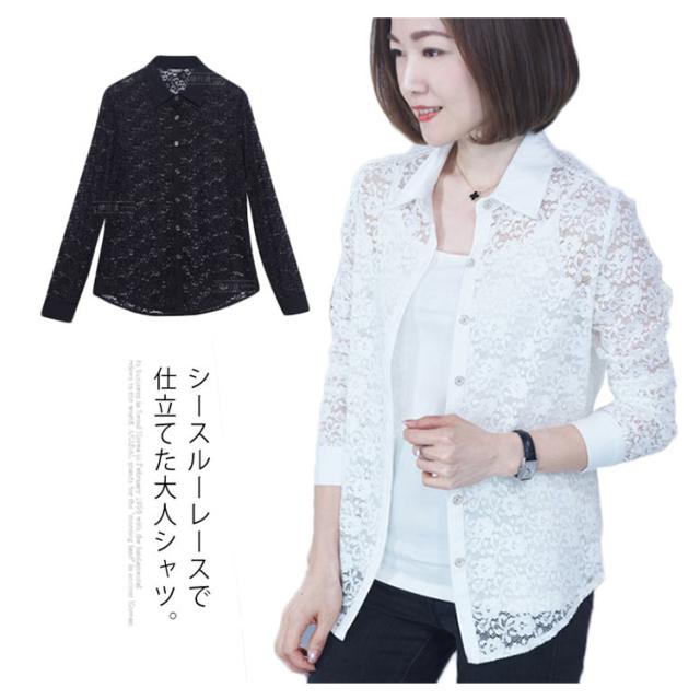 トップス シースルーシャツ 長袖シャツ M−4XLサイズ!シースルーレース レディース レースシャツ ブラウス M−4XLサイズ!シースルーレース フラワーレース シャツ カジュアルシャツ ホワイト ブラック 大きサイズ 春 長袖