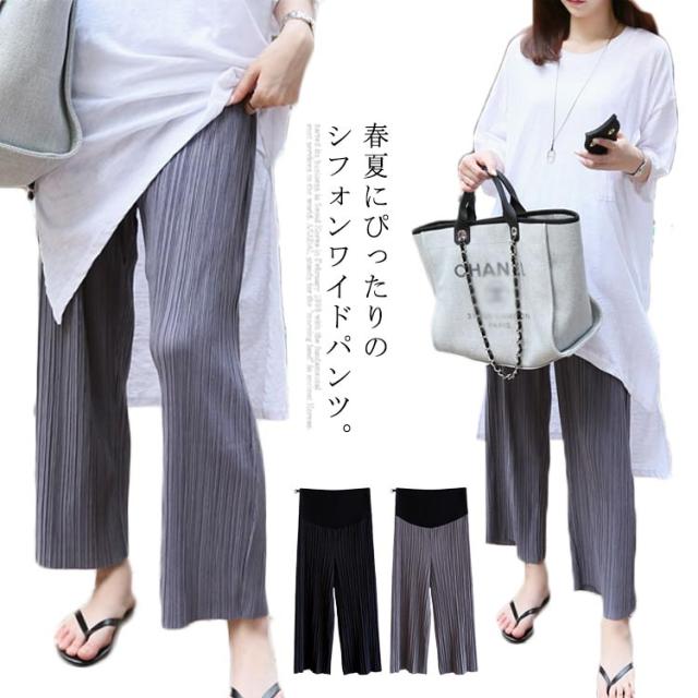 マタニティパンツ マタニティ パンツ ガウチョパンツ 産前産後 マタニティパンツ プリーツ加工 シフォンパンツ カジュアルパンツ ボトムス 9分丈 シンプル 無地 ワイドパンツ