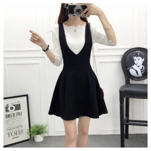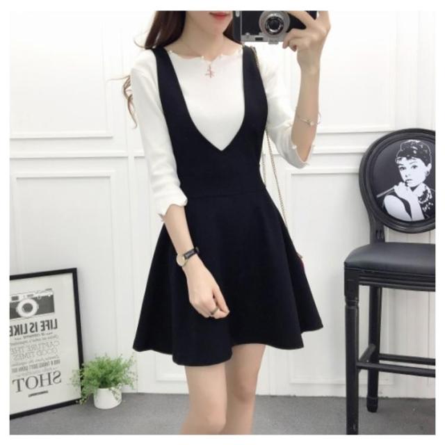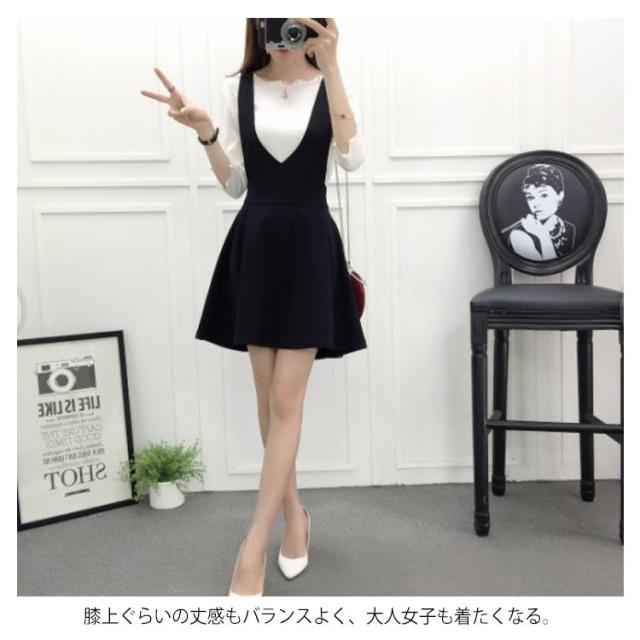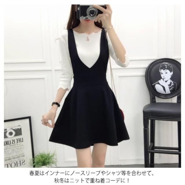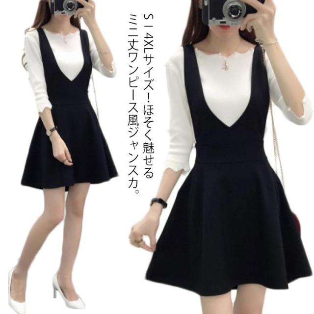 | S−4XLサイズ!ほそく魅せるミニ丈ワンピース風ジャンスカ。 胸元の深Vネックやフレアのラインがフェミニンながらも、お腹まわりが楽ちんな大人女子に嬉しい1枚です♪ 春夏はインナーにノースリーブやシャツ等を合わせて、秋冬はニットで重ね着コーデに! 膝上ぐらいの丈感もバランスよく、大人女子も着たくなる。 定番ブラックで季節を問わず着られるオススメitemです。 | |