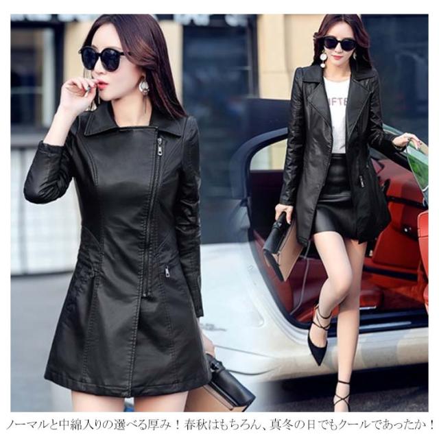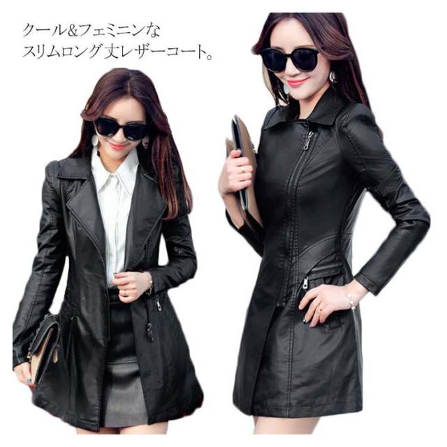 ロングレザーコート レザージャケット テーラードコート レディース レザーコート ロング丈 ライダースジャケット 厚手 薄手 フェイクレザー アウター 秋冬 PU 革 コート ジャケッ