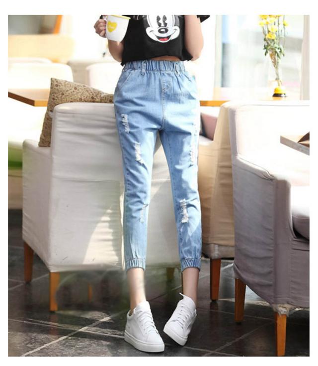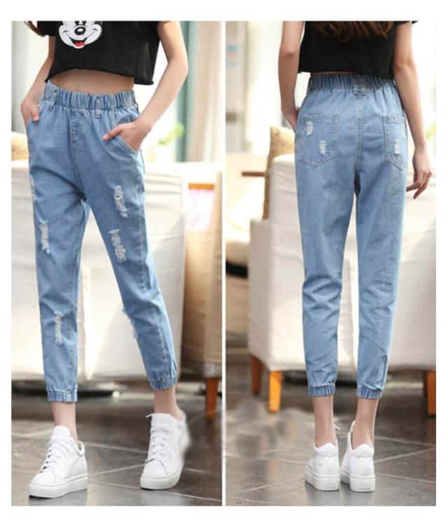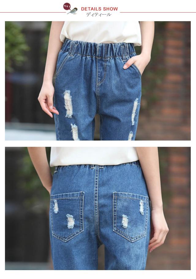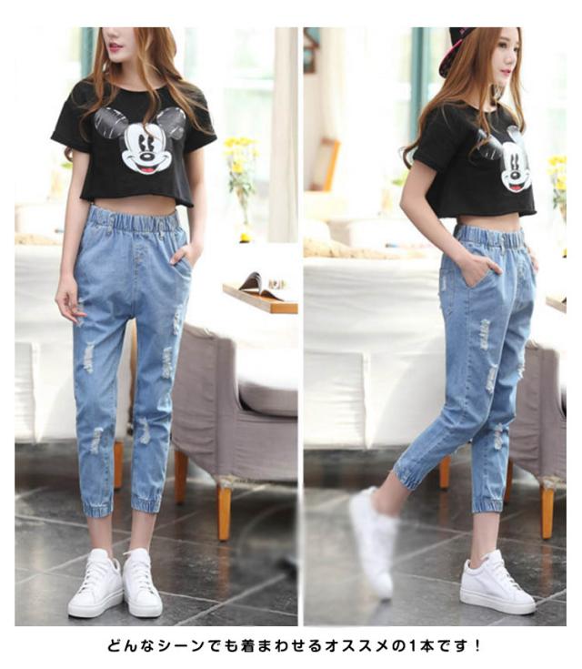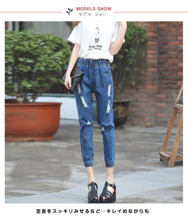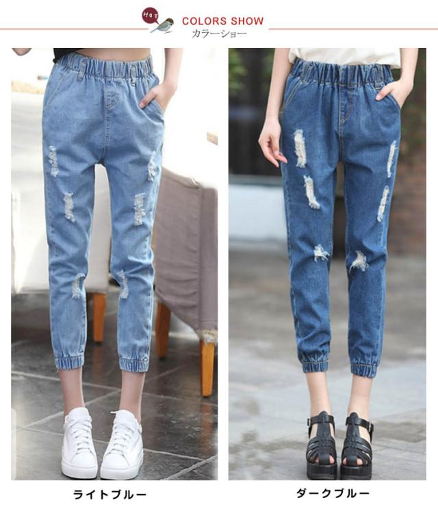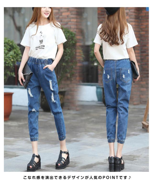 ジョガーパンツ/レディース/ダメージ加工/ジョグパンツ/足首/ゴム/ゆるパンツ/デニムパンツ/レディース/ウエストゴム/楽ちんパンツ