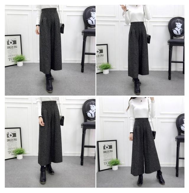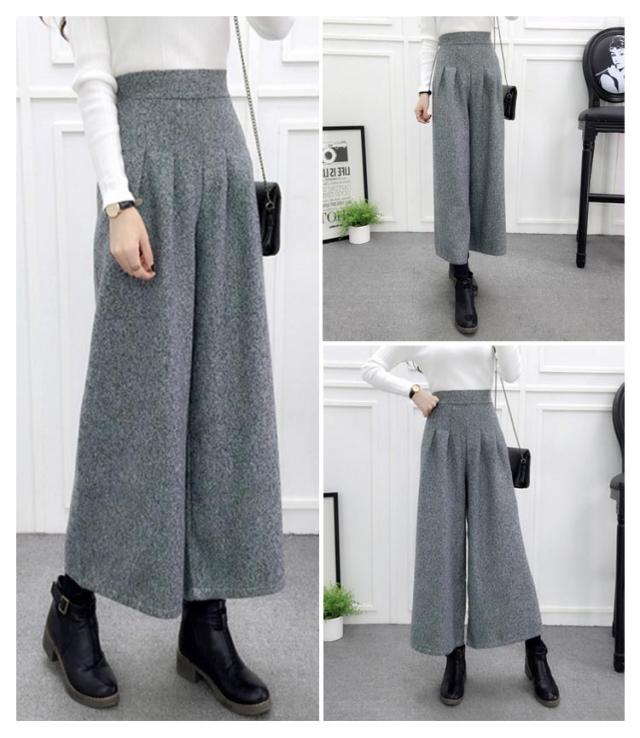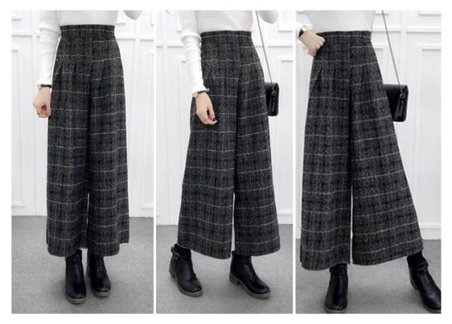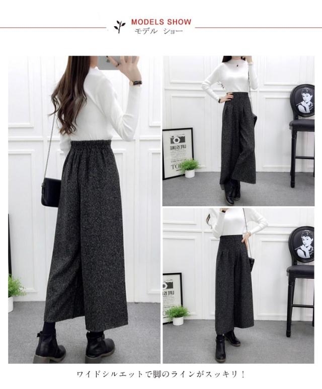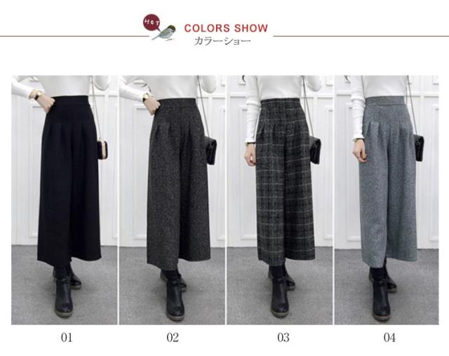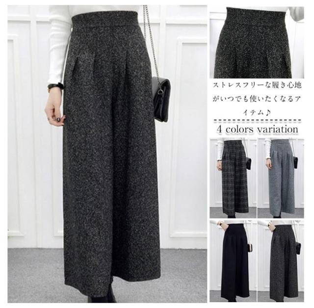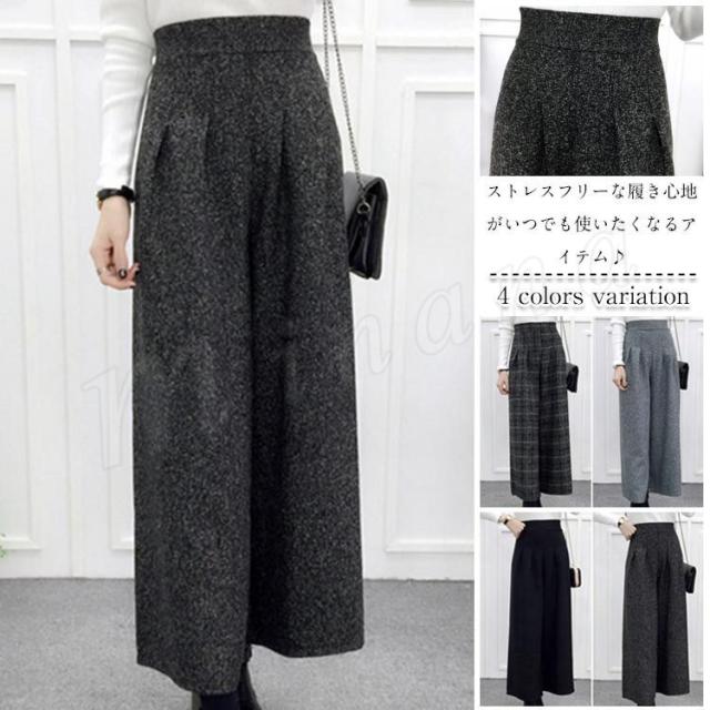 ワイドパンツ ガウチョ ラシャパンツ 秋冬パンツ グレンチェック レディース ボトムス ハイウェスト 九分丈 秋冬新作