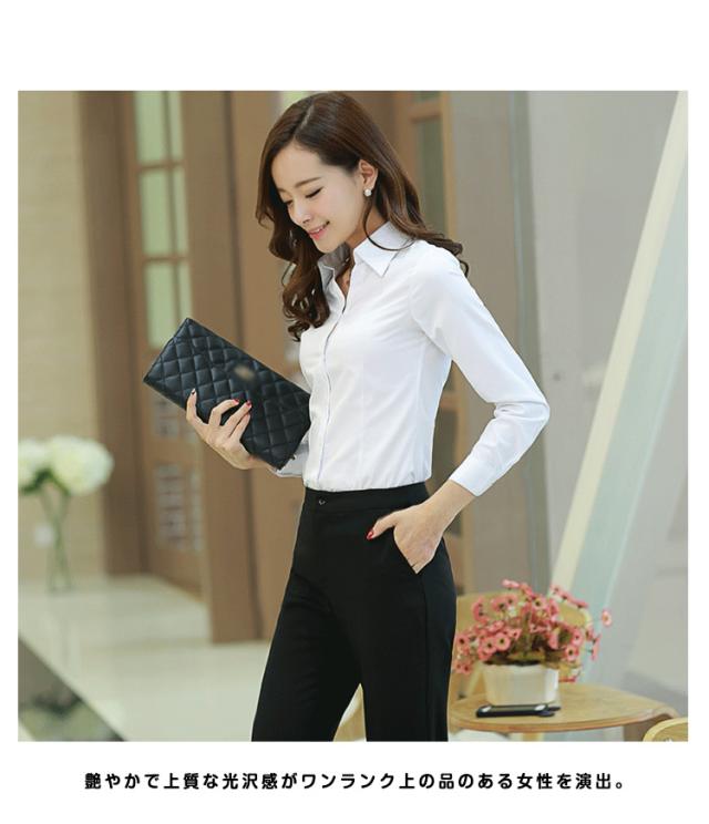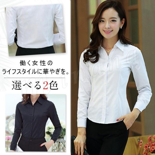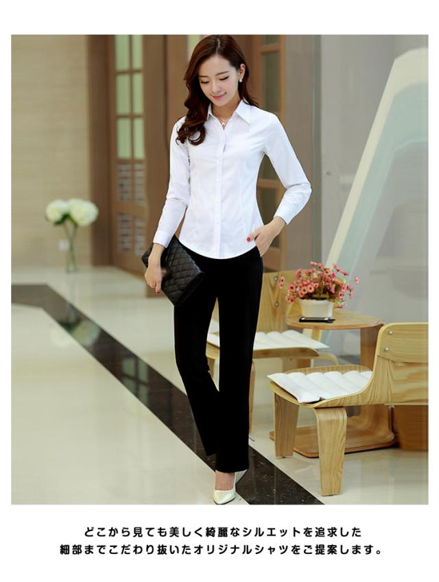 事務服 制服 フォーマル ビジネス 長袖ワイシャツ Vネック スリムワイシャツ ワイシャツ 長袖 レディース クールビズ 通勤着
