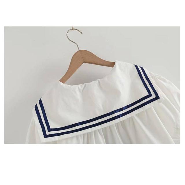 | 可愛いセーラー襟ブラウスです。 肌触りの優しい素材が気持よく着心地も抜群! ゆったりして体型をカバーすることができます。 シンプルなパンツやスカートに合わせやすい着回し抜群アイテムです | |