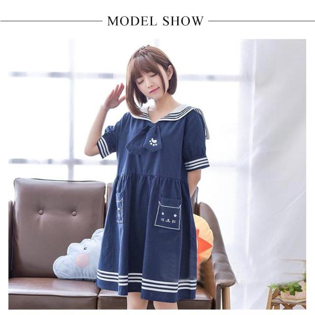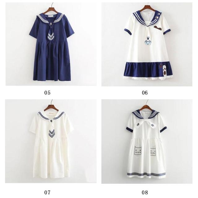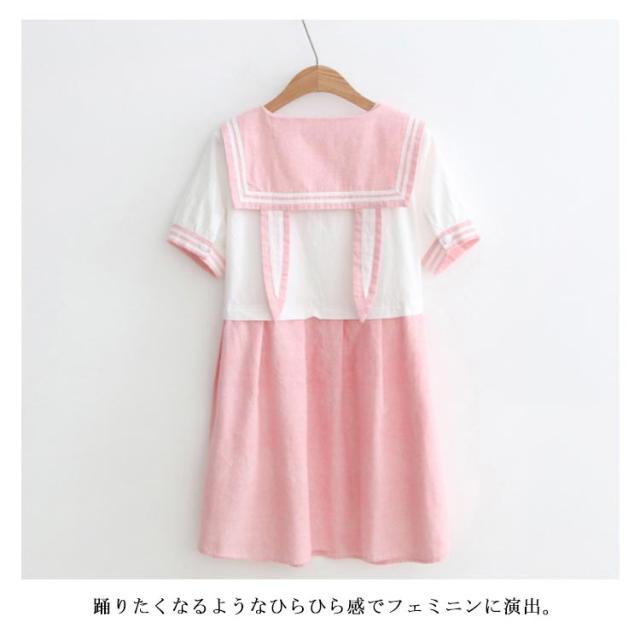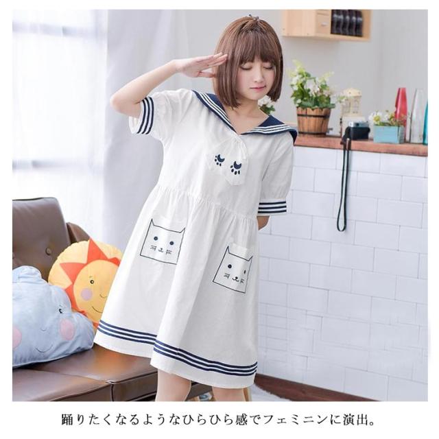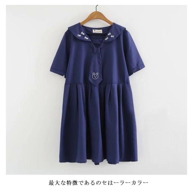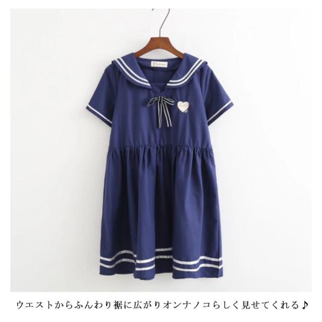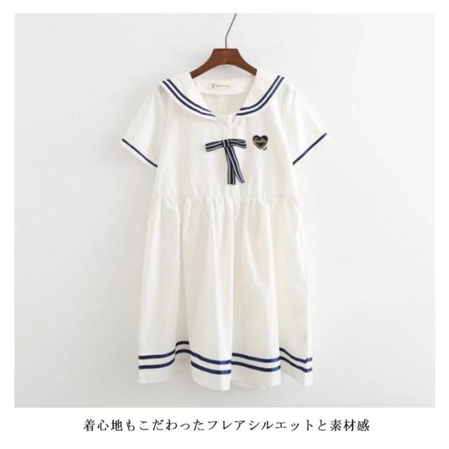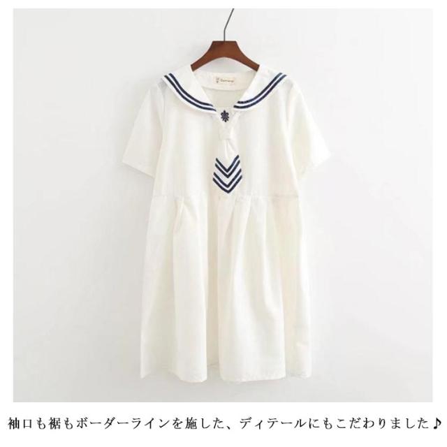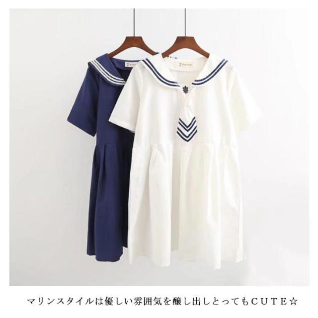 半袖&長袖選べる!森ガールワンピース 春 夏 ワンピース マリン風 セーラー風ワンピース セーラー ワンピース セーラー服 ワンピ 長袖 セーラーカラー セーラー衿 onepiece 半袖 長袖 ホワイト ネービー 可愛い