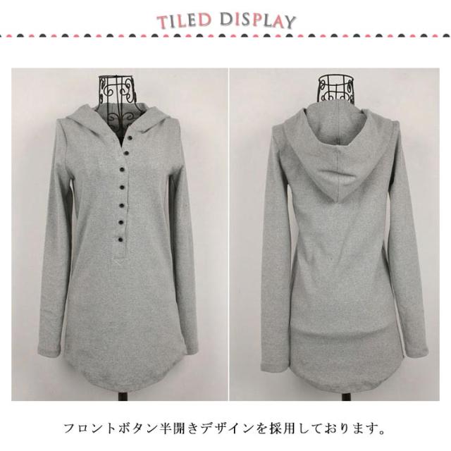 | 全3色!春秋一枚で主役になるフード付き長袖カットソー。 フロントボタン半開きデザインを採用しております。 体に程度よくフィットし、ボディラインが強調できます。 お尻ライン隠れる丈感もバランス良い。 シンプル無地だから合わせやすく、お手元のボトムスと好相性。 | |
