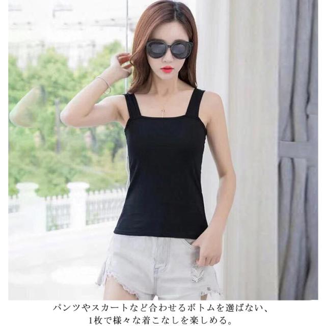 | シンプルながら、ブラ紐を隠してくれるタンクトップ。 総レーストップスの下にバッチリ♪ コットン素材の柔らかい生地で着心地が良くデイリー使いにオススメな1枚です。 | |