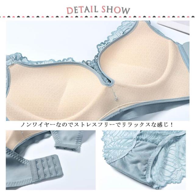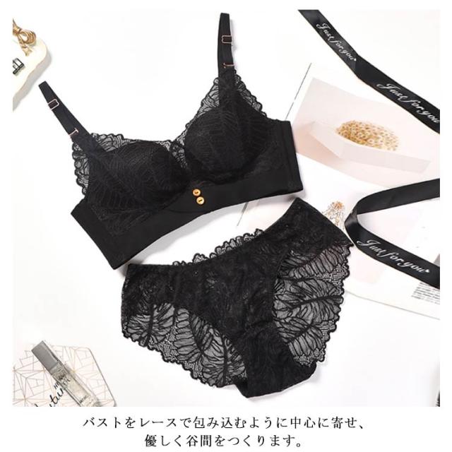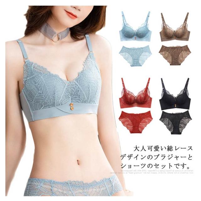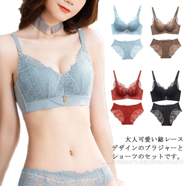 送料無料 ブラジャー ショーツセット ノンワイヤーブラ 下着 レディース 総レースブラ 脇肉 脇高 上下セット 下着 インナー ランジェリー ブラショーツ 谷間メイク カップブラ オシャレ 上品 薄手 通気性 柔らかい