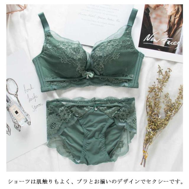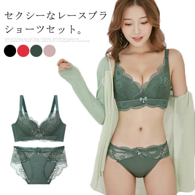 送料無料 ブラジャー ショーツセット ノンワイヤーブラ 下着 脇肉 脇高 レディース 総レースブラ 上下セット 2点セット 下着 インナー ランジェリー ブラショーツ 谷間メイク カップブラ オシャレ 上品 薄手 通気性 かわいい