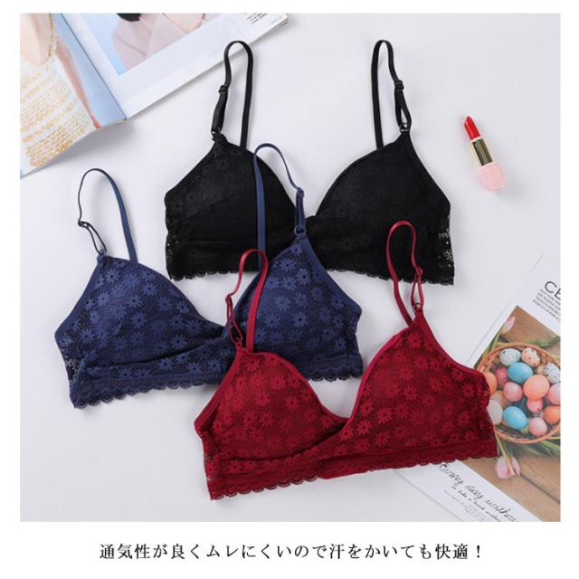 送料無料 ブラジャー ノンワイヤー 3/4カップ 三角ブラ 刺繍 レディース 単品 ブラ ブラジャー 脇肉 谷間 美胸 バストアップ 補正 花柄 レース アンダーウエア 美バスト 下着 ブラエアリー 薄手 通気性