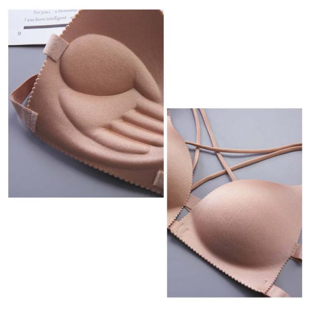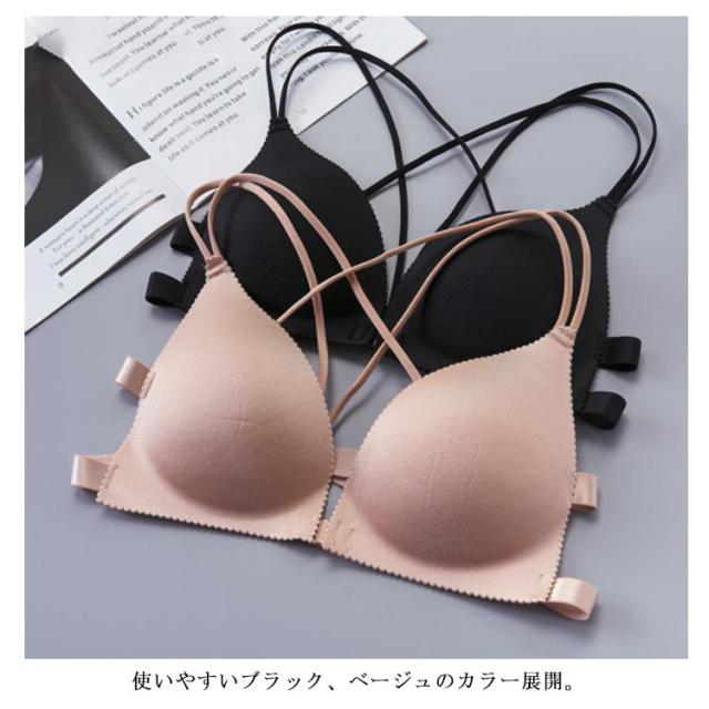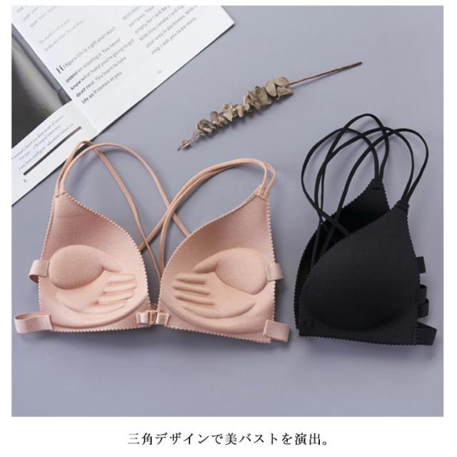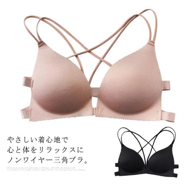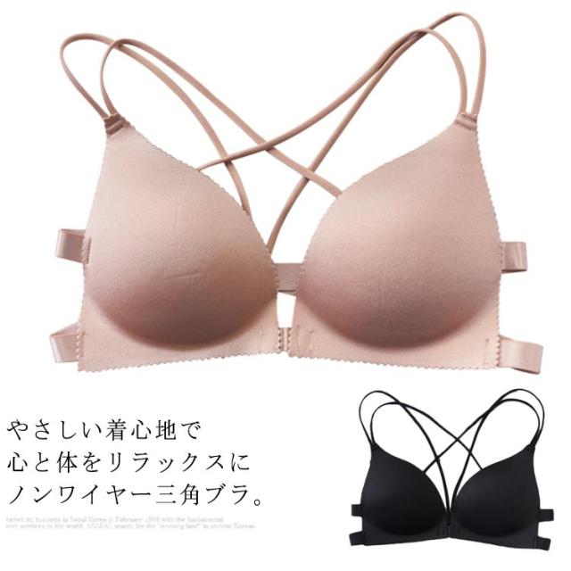 送料無料 ノンワイヤー ブラジャー 三角ブラ 見せブラ カップ付き レディース 下着 谷間メイク ブラ フロントホック ストラップレス 脇肉 谷間 美胸 バストアップ 補正 アンダーウエア 美バスト 下着 ベアトップ シンプル 無地 薄手 肌着 柔らかい 快適