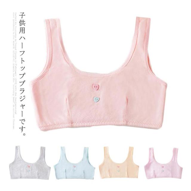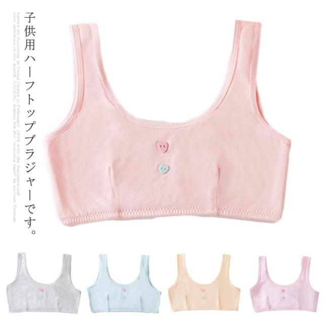 送料無料 キッズブラジャー ジュニアブラ ハーフトップブラジャー ノンワイヤー スポーツブラジャー 子供用ブラジャー 小学生 スクールインナー キャミソール 下着 女の子 女児 女子 スポブラ シンプル 可愛い 綿 コットン