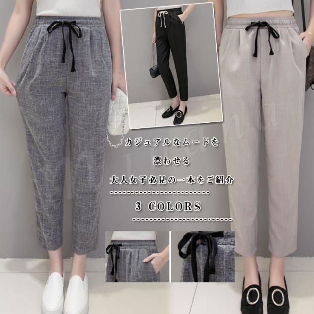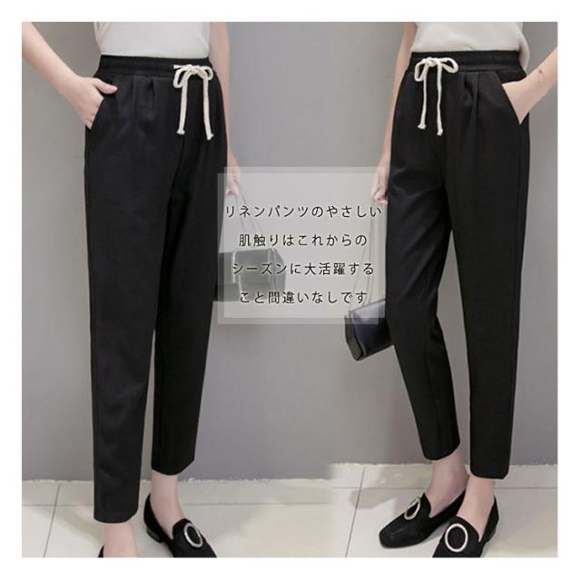 綿麻 パンツ サルエルパンツ レディース リネン ロングパンツ テーパードパンツ アンクルパンツ リネンパンツ リラックスパンツ イージーパンツ ルームウェア ボトムス