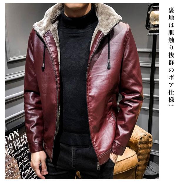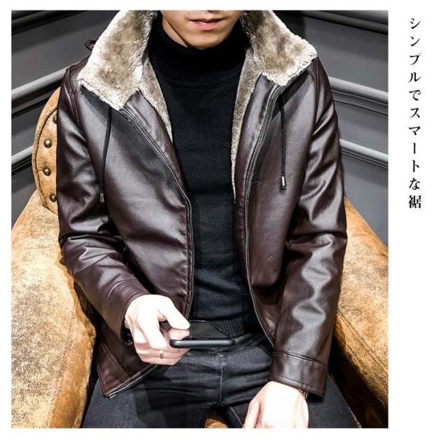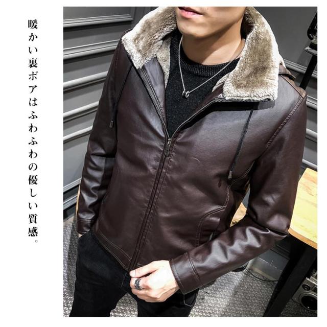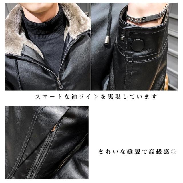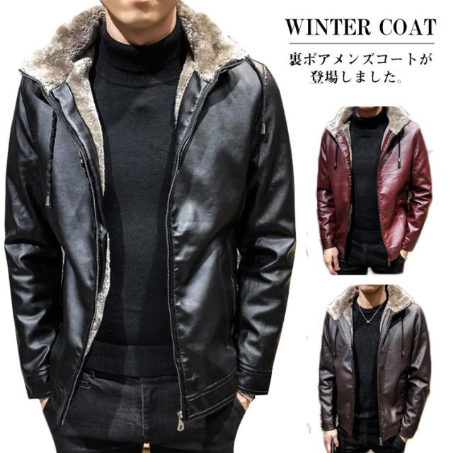 裏ボア ジャケット フェイク レザージャケット ライダースジャケット 裏ボア コート PU レザー ジャケット コート メンズ ボア ジャケット コート 防寒着 革ジャン アメカジ系 アウター