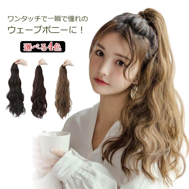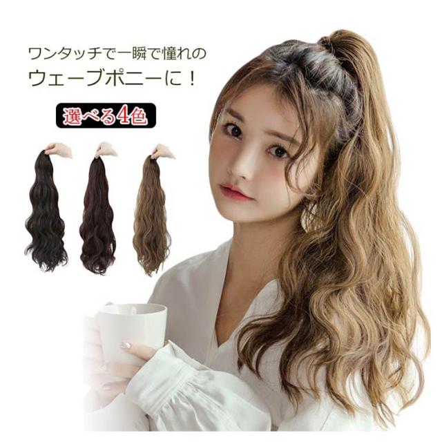 ポニーテール クリップポニー エクステ ワンタッチ ロング ミディアム ポイントウィッグ ゆるカール つけ毛 部分ウィッグ 耐熱 ウィッグ エクステンション ゆるかわ