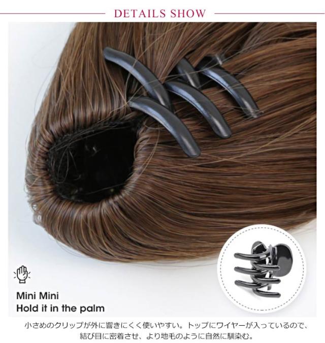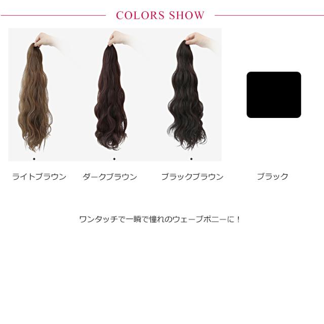 | ワンタッチで一瞬で憧れのウェーブポニーに! ボリューミーな長さが大人可愛いを演出し、不器用さんでも簡単装着できるクリップポニー。 長めでボリュームがあるのに軽い仕上がりのナチュゆるカールがどんなスタイルにも合わせやすく、デイリーに大活躍。 小さめのクリップが外に響きにくく使いやすい。トップにワイヤーが入っているので、結び目に密着させ、より地毛のように自然に馴染む。 ウィッグ特有のテカリのないマットファイバーを採用し、髪もサラサラでとても自然。 デイリーのオシャレや通勤はもちろん、コスプレ・仮装にも大活躍すること間違いなし! | |