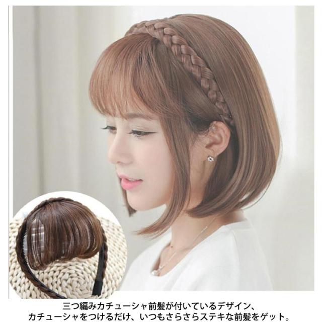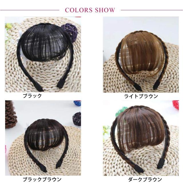 カチューシャ付き 前髪 シースルーバング エアリー前髪 前髪ウィッグ エクステ 三つ編みカチューシャ ヘアバング 付け毛 部分ウィッグ 耐熱 成人式 自然