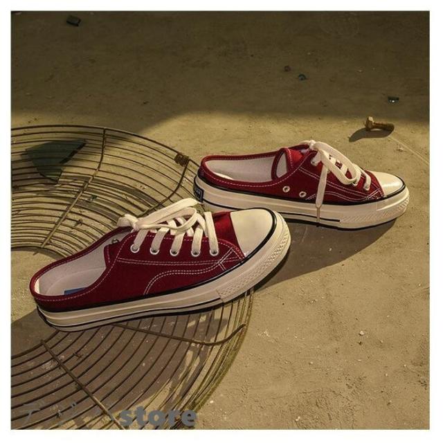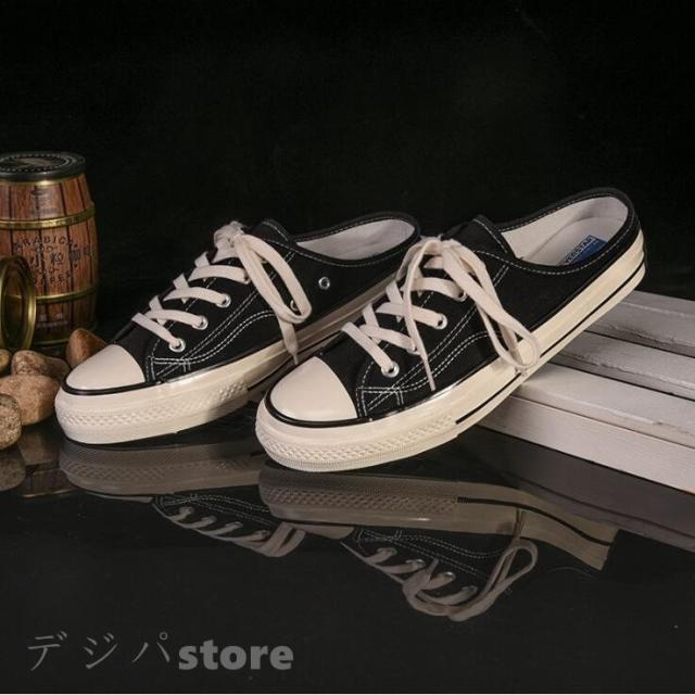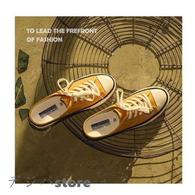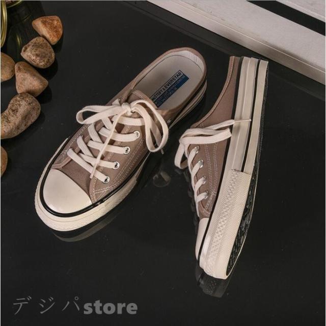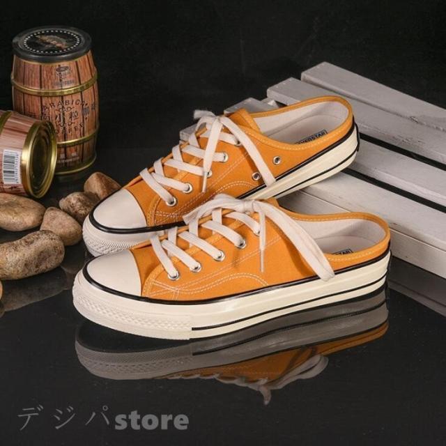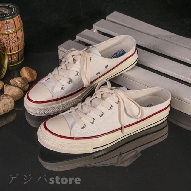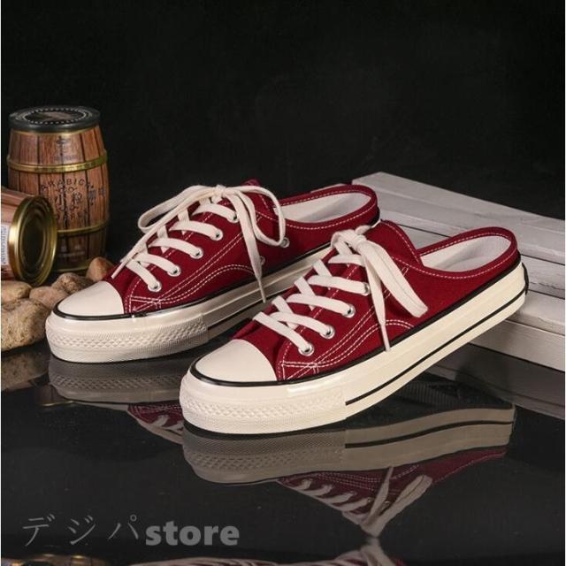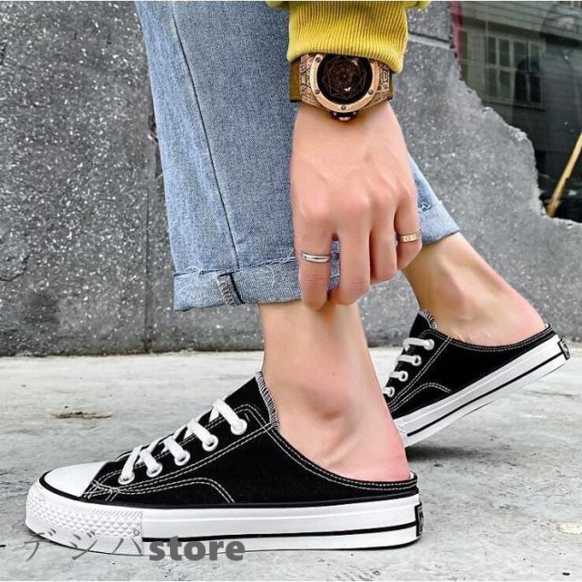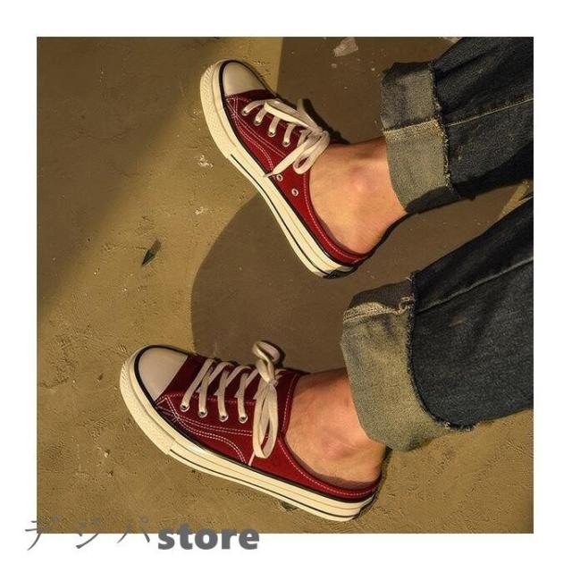 スニーカー メンズ キャンバス キャンバススニーカー かかとなし スリッポンシューズ レースアップ フラットシューズ 靴 シューズ 夏物 夏新作