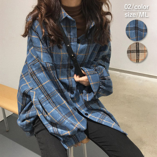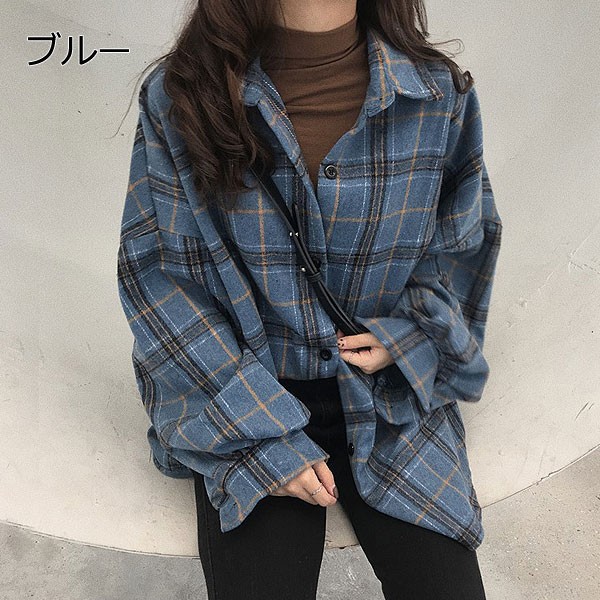 チェックシャツ レディース 韓国 カジュアル 大きいサイズ 長袖 おしゃれ ロング