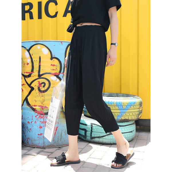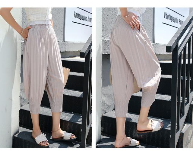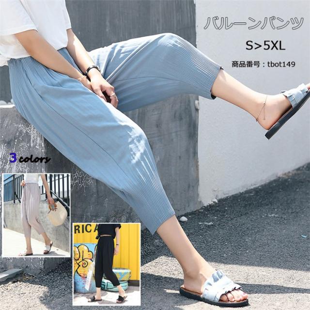 ワイドパンツ バルーンパンツ レディース プリーツ 夏 スカンツ ズボン ウェストゴム シフォン 大きいサイズあり 無地 高級感 スカーチョ 20代 30代 40代 50代