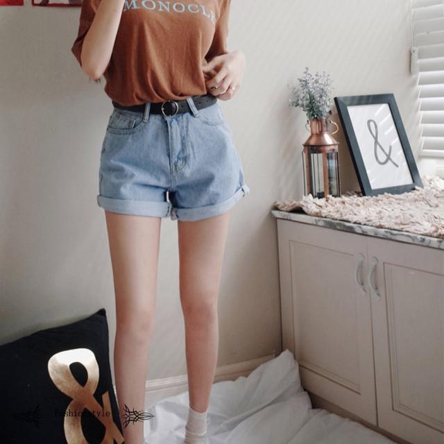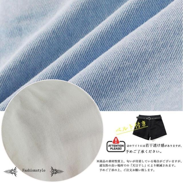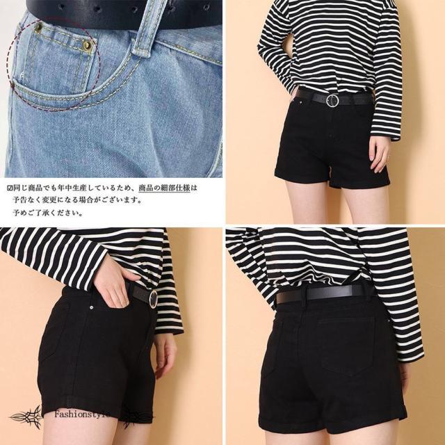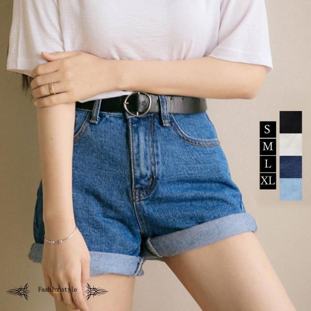 ハイウエスト デニムショートパンツ レディース 夏 ベルト付き ショーパン ロールアップ