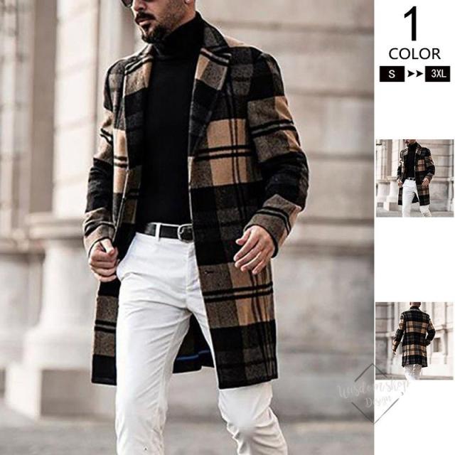 チェスターコート メンズ アウター トレンチコート ロング丈 メンズ ビジネスコート おしゃれ チェック柄 大きいサイズ 2020秋冬新作 厚手 暖 高品質 細身