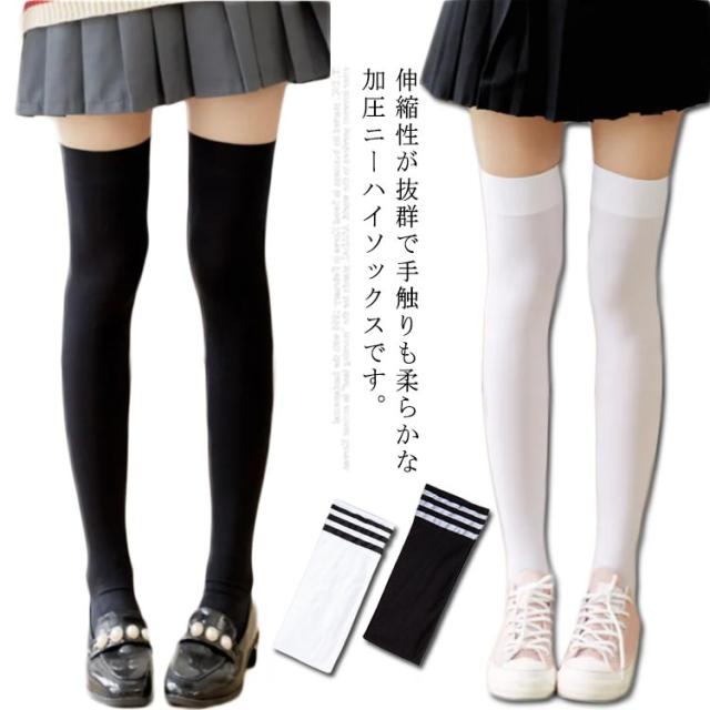 ニーハイソックス 薄手 夏 オーバーニー 着圧ソックス 膝上 レディーズ 高校生 靴下 ハイソックス 太もも丈 加圧ソックス 制服用 コスプレ 美脚 ロング メンズ女装対応 送料無料