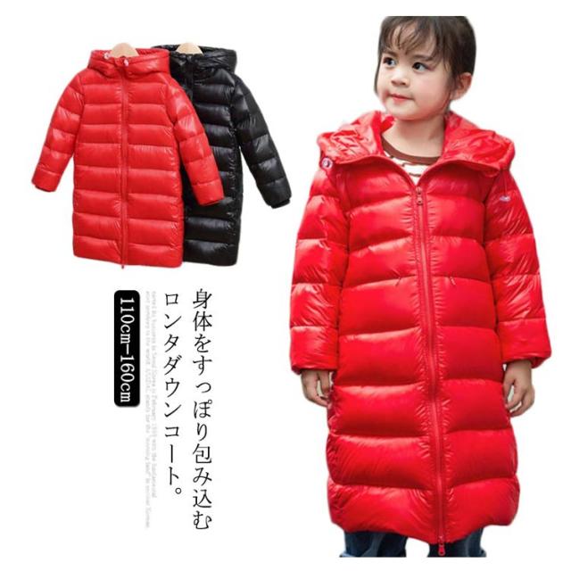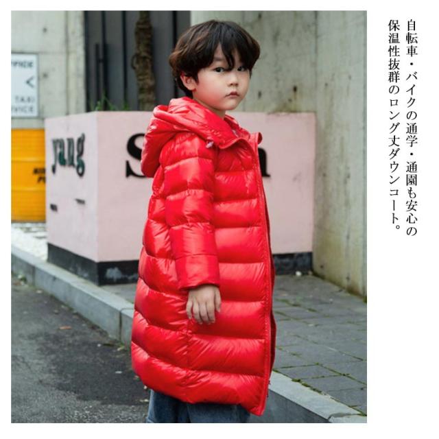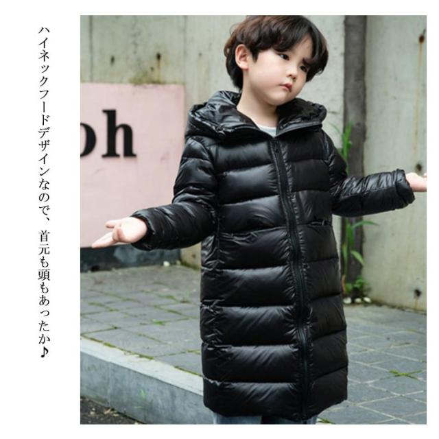 ダウンコート ロングコート ダウン90% ハイネック フード付き ダウンジャケット 子供服 キッズ アウター 女の子 男の子 軽量 防寒 通学 通園 秋冬
