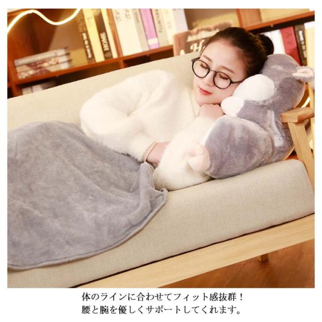 腰当てクッション ブランケット 2点セット 抱き枕 背もたれ サポートクッション 毛布付き 可愛い 動物 腰痛クッション お昼寝枕 腰枕 U型 腰当て 多機能 ハンドインクッション 背当て 読書サポート ぬいぐるみ お昼寝用 車用 冷房対策
