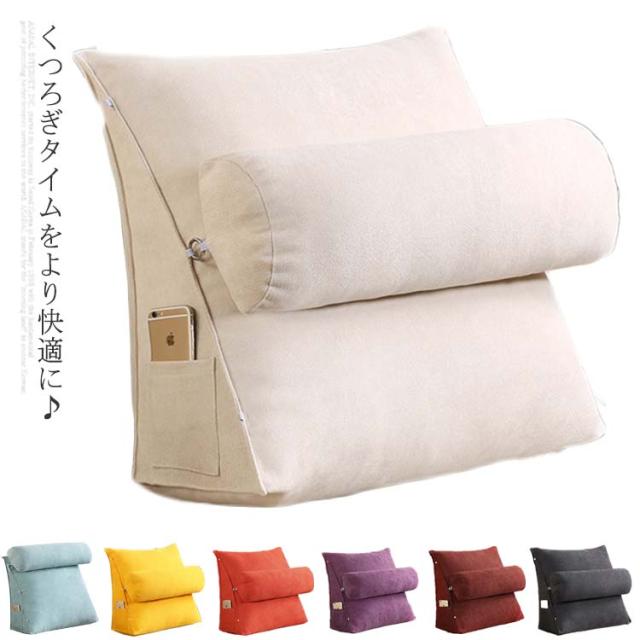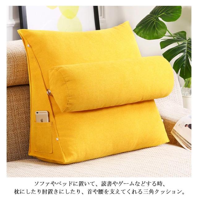 三角クッション 背もたれ クッション ベッドクッション ソファークッション 三角 枕 座布団 足枕 座椅子 腰枕 腰クッション ポケット付き 北欧 洗える 洗濯可