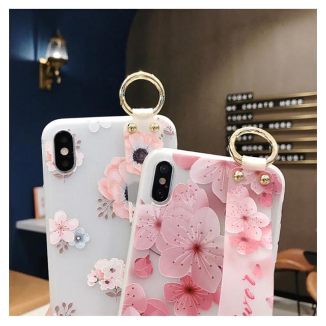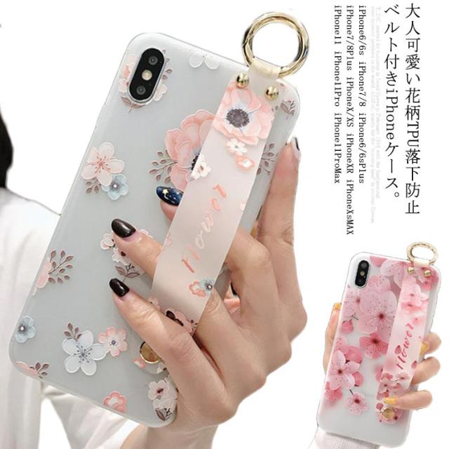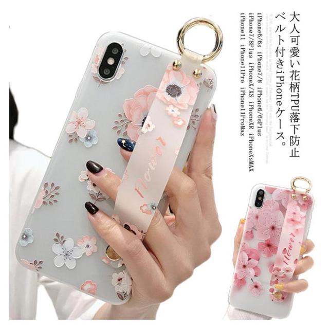 送料無料 iPhone iPhone11Pro Max/xs max/S XS ケース ソフト スマホケース 花柄 桜 ハンドベルト付き iphone8 iphone7 ケース iphone6/6s iphone7plus iphone8plus スマートフォンケース保護カバー