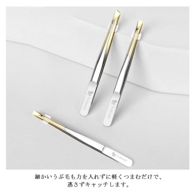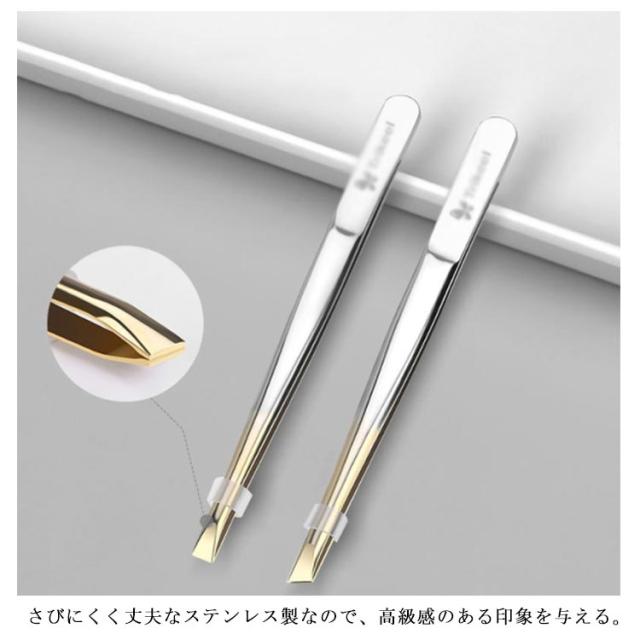 | 「ムダ毛処理」と「毛穴ケア」にお悩みの方に必見アイテム。 さびにくく丈夫なステンレス製なので、高級感のある印象を与える。 平型/斜め型の2種入り、用途によって使い分けできます。 眉毛、アイプチ、つけまつげにも対応可能、一本でどちらも解決しちゃう便利グッズです。 細かいうぶ毛も力を入れずに軽くつまむだけで、逃さずキャッチします。 | |