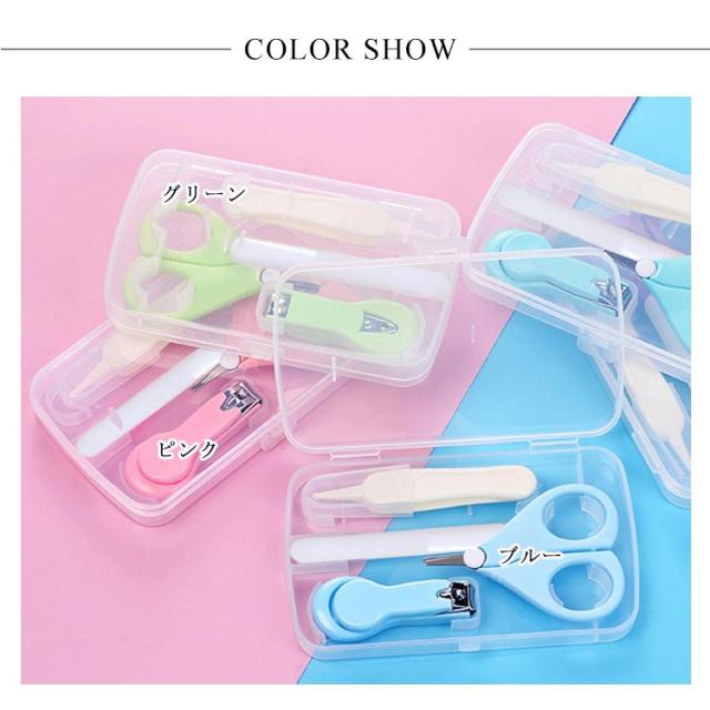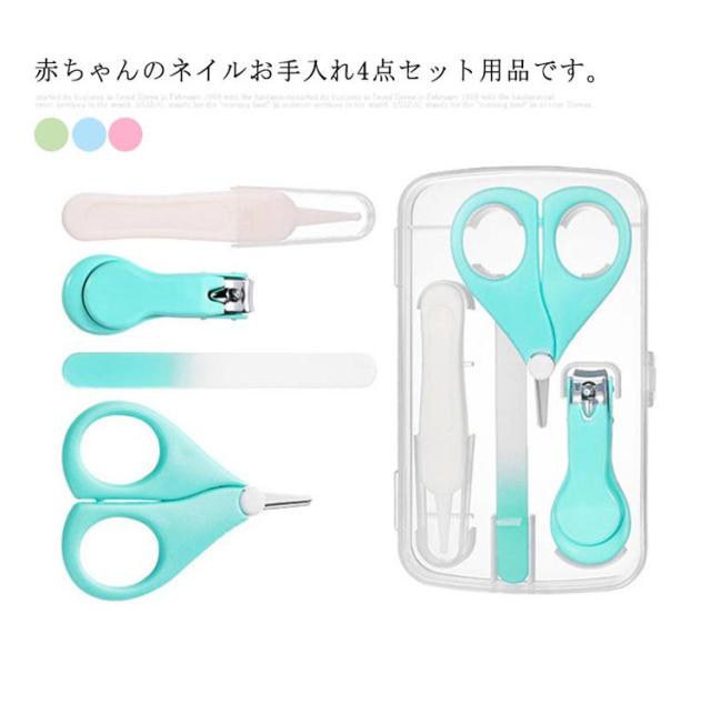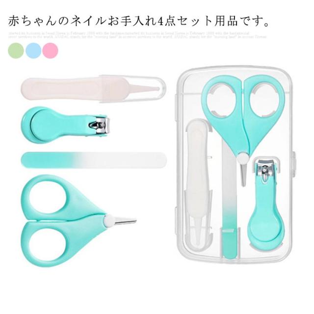 爪切りセット 新生児 ベビー 爪やすり ハサミ 鼻用ピンセット 赤ちゃん 子供用 持ち運び便利 ネイルケア 収納ケース付き 4点セット 女の子 男の子 送料無料