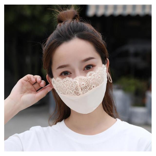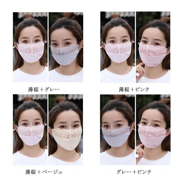 レース&冷感素材 切り替え マスク 冷感 2枚入り 送料無料 レディース キレイめ 夏用マスク ひんやり 防塵 涼しい ひんやり キレイめ 通気性 花柄レース マスク