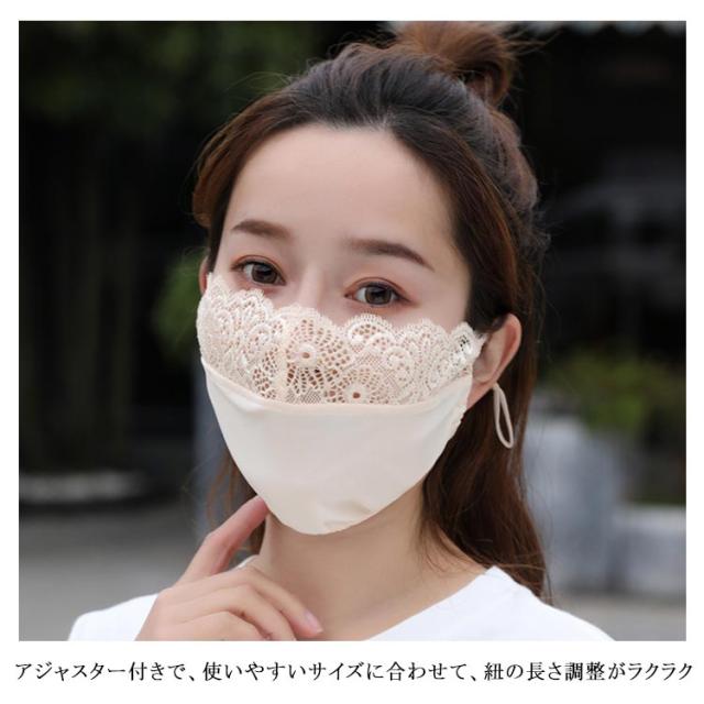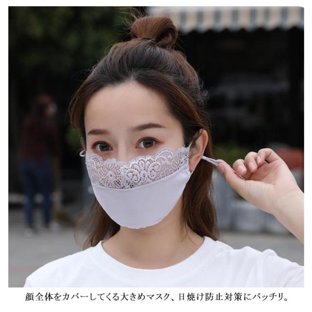 | レースで女性らしさをプラス♪ ひんやり冷感素材切替で付け心地も涼しく快適。 レース素材で通気性抜群。蒸し暑い季節にもサラサラ快適! アジャスター付きで、使いやすいサイズに合わせて、紐の長さ調整がラクラク 顔全体をカバーしてくる大きめマスク、日焼け防止対策にバッチリ。 | |