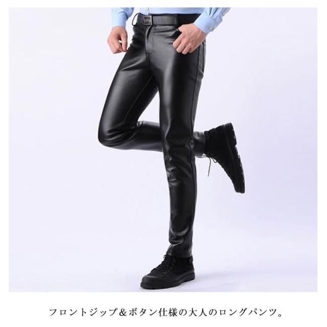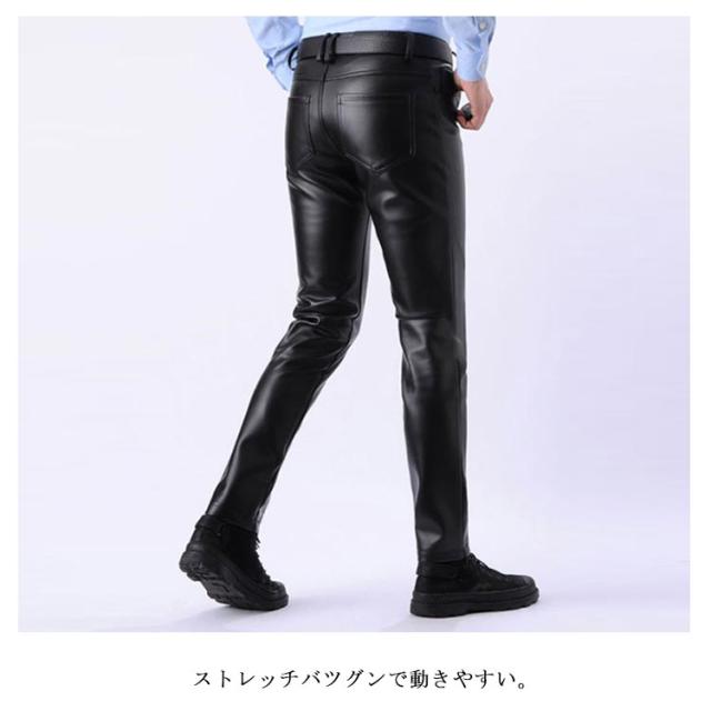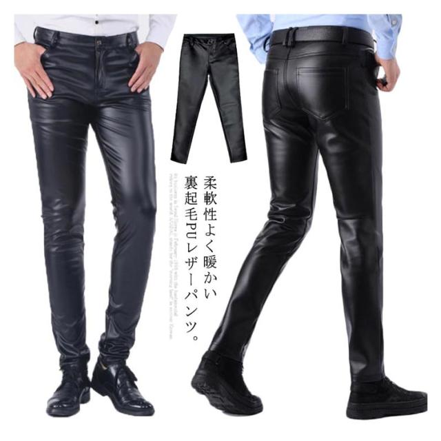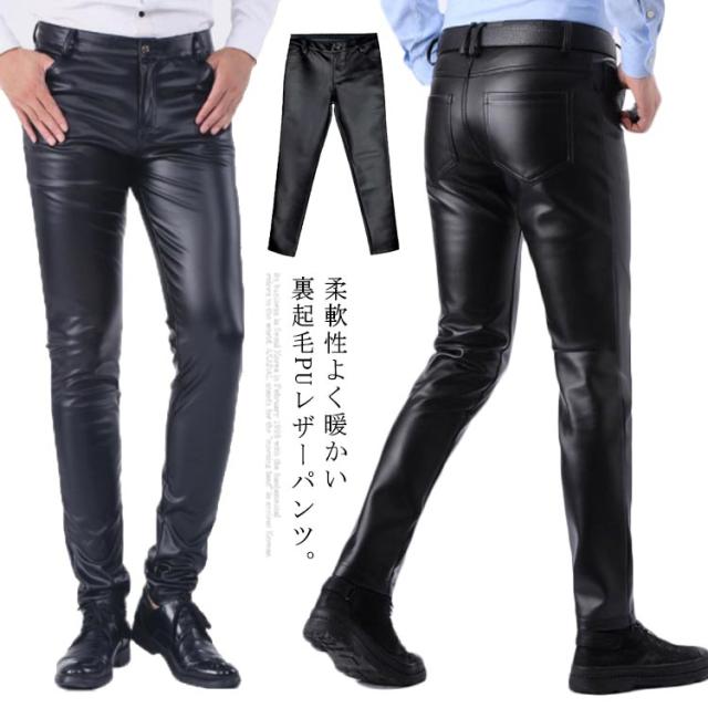 メンズ レザーパンツ スキニーパンツ ストレッチパンツ PUレザー 裏起毛 スリム ロングパンツ おしゃれ 秋冬 アメカジ ストリート系