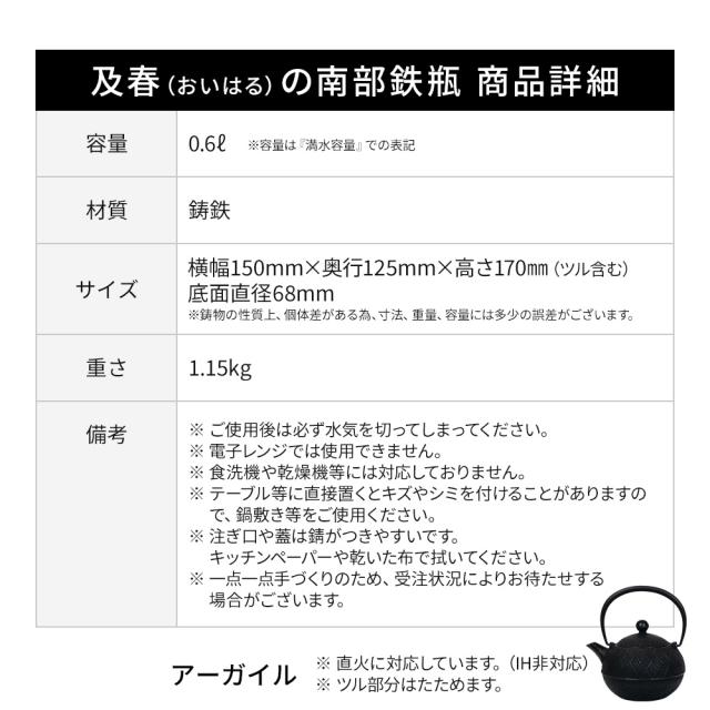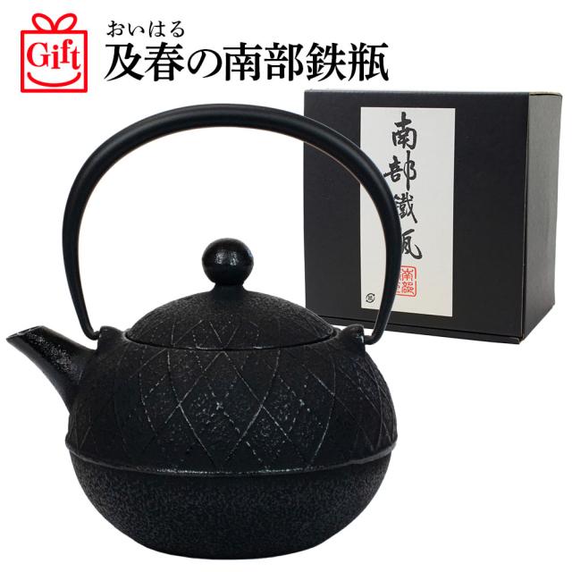 ギフト用 南部鉄瓶 及春(おいはる) アーガイル 0.6L 鉄瓶 南部鉄器 及春鋳造所 日本製 直火OK 鉄 急須