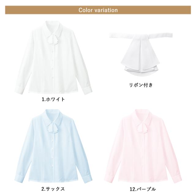 事務服 ブラウス レディース 長袖 制服 nuovo 秋冬 春夏 FOLK シャツ リボン付き【送料無料】白 ホワイト 医療事務 受付 接客 冠婚葬祭 セレモニー フォーマル オフィス スーツ おうちで洗える agesugi_sfa