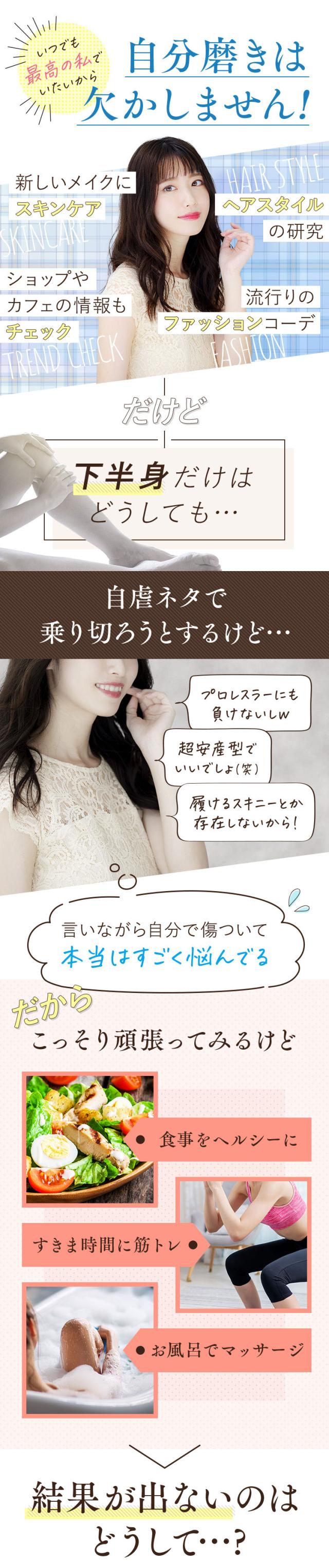 ・【リラクソロジー設計?】 脚の魅せツボであるトリガーポイントを、加圧によって適度に刺激。指圧マッサージをするかのような引き締め感でめぐりにアプローチし、滞りがちなめぐりにアプローチし、軽やかなスッキリ脚へ。