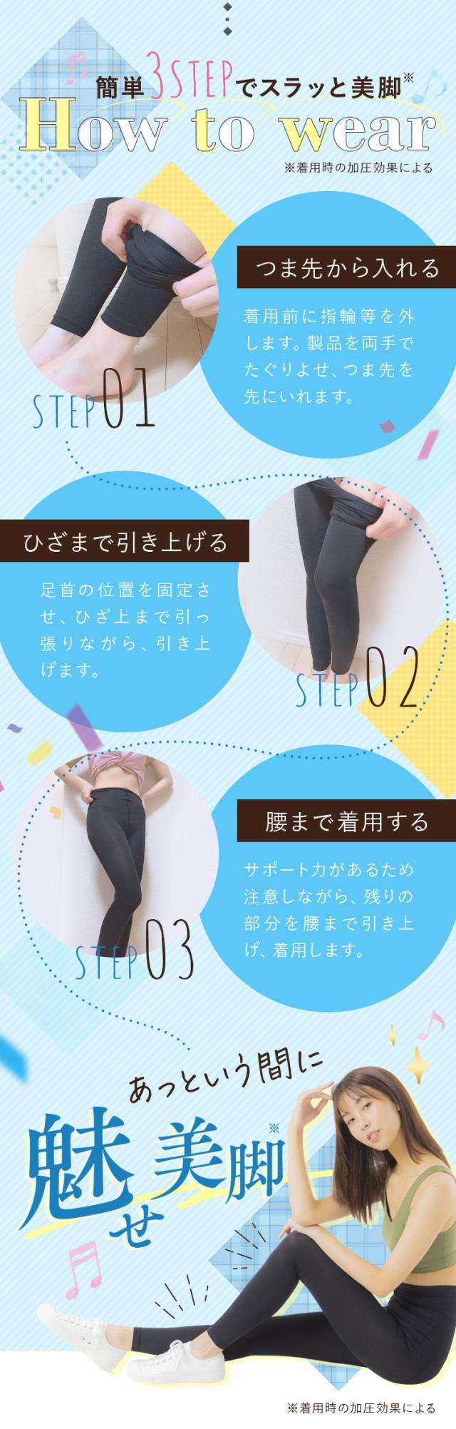 ・【おうち時間に作り上げる FULL美 シルエット!?】これ1つで”ギュギュッ”と脚痩せスリムに!独自技術で業界最高水準の着圧効果がウエスト、ヒップ、脚をしっかり加圧し、理想の体形へと近づきます。ヒップアップにも効果的!