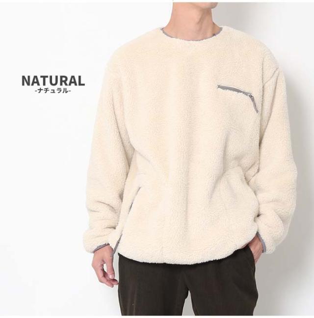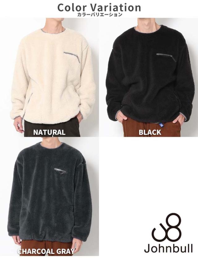 Jonbull ジョンブル フリース クルーネック プルオーバー 厚手 もふもふ 毛 起毛 パイピング アメカジ ストリート メンズ 男性 きれいめ アウトドア ミリタリー カジュアル ブランド シンプル 大人 丈夫 頑丈 タフ ブラック グレー アイボリー 秋冬 Jonbull
