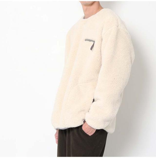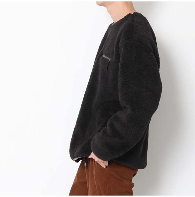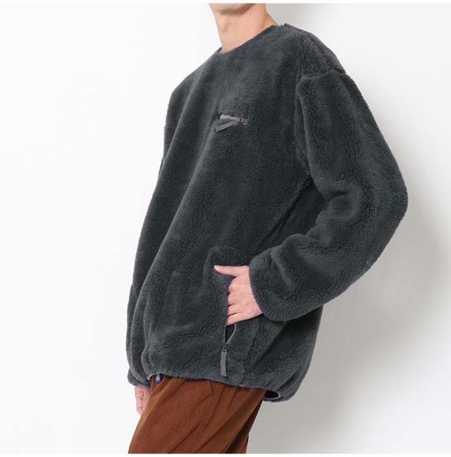 密度の高い両面フリース生地を使用したクルーネックプルオーバー。