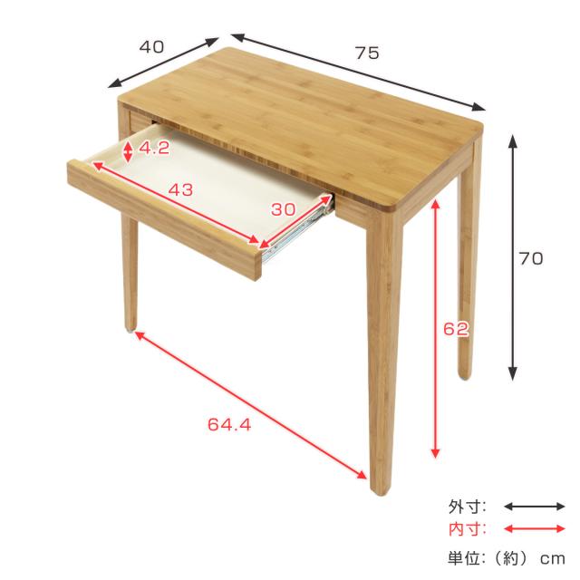 デスク 幅75cm 竹製 ( ワークデスク 引き出し 机 つくえ おしゃれ リビング 完成品 シンプル 台所 ダイニング パソコンデスク PCデスク コンパクトデスク スリム 収納 リビングデスク 引出し 勉強机 学習机 )
