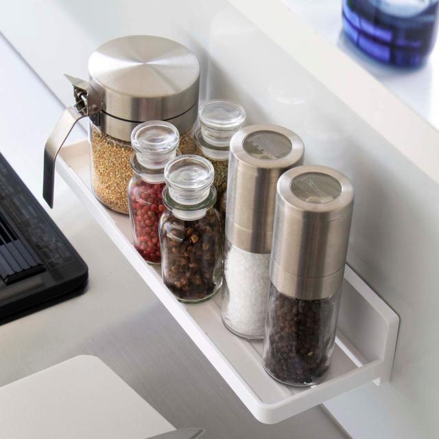 水まわりだけでなく、キッチンのちょっとしたスペースにも設置できるので、スパイスやオイルなどの調味料置きとしても重宝します。