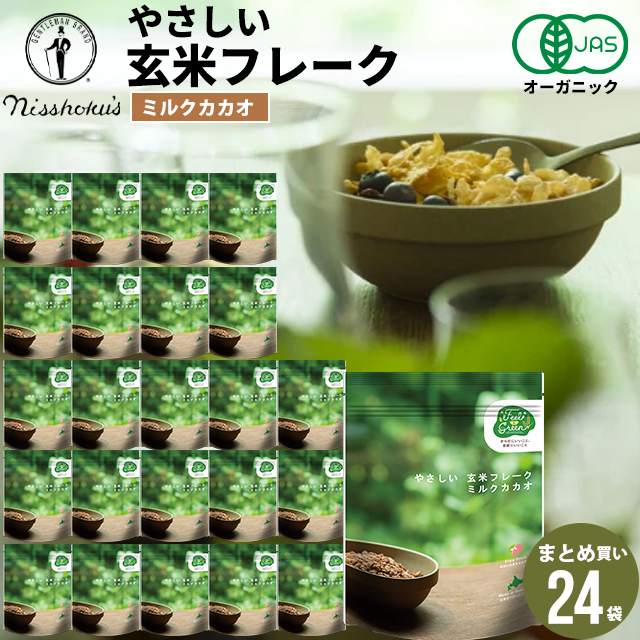 朝食 自宅用 まとめ買い 送料無料 日食 Feel&Green やさしい玄米フレーク ミルクカカオ(120g×24袋) / 日食 フレーク コーンフレーク シリアル 味付き げんまい 朝ごはん 健康 ヘルシー ダイエット 食物繊維 栄養 まとめ買い 自宅用 一括購入