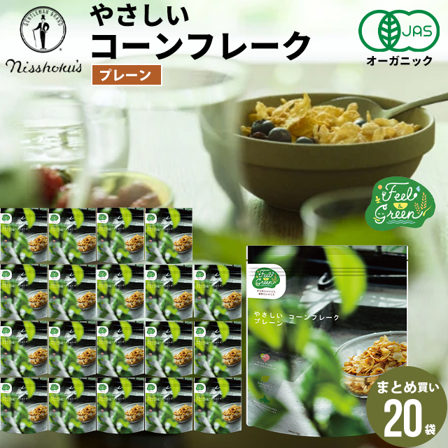 朝食 自宅用 まとめ買い 送料無料 日食 Feel&Green やさしいコーンフレーク プレーン(120g×20袋) / 日食 フレーク コーンフレーク シリアル 朝ごはん 健康 ヘルシー ダイエット 食物繊維 栄養 まとめ買い 自宅用 一括購入