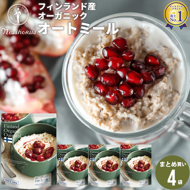 朝食 自宅用 まとめ買い 送料無料 日食フィンランド産オーガニックオートミール(330g×4袋) / 日食 フレーク コーンフレーク シリアル オートミール プレーン 朝ごはん 健康 ヘルシー ダイエット 食物繊維 まとめ買い 自宅用 一括購入