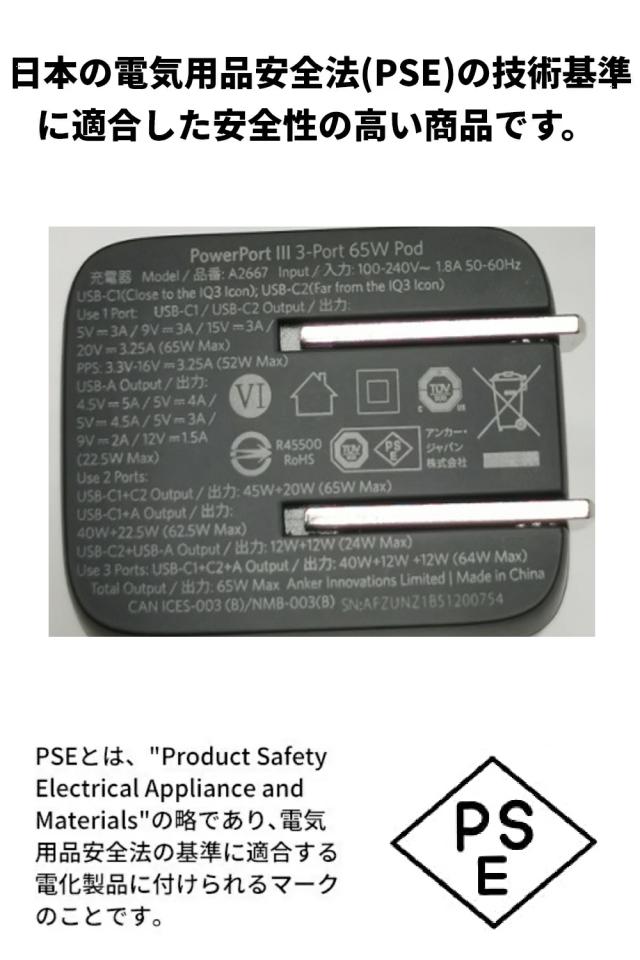 Ankerグループのすべての対象製品(モバイルバッテリー・急速充電器・イヤホン等)は、PSEマークの取得に必要な技術基準に適合しております。